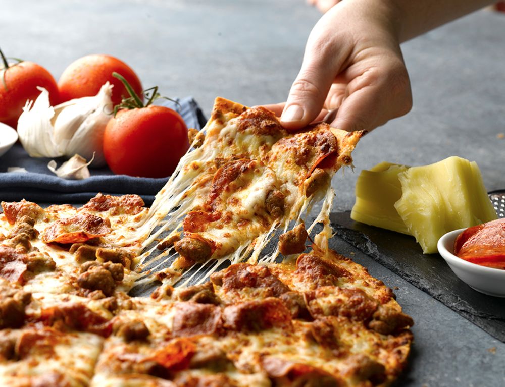 Our signature pizza sauce layered with sausage and real cheese made from mozzarella for a taste you’ll crave. Your choice of crust.